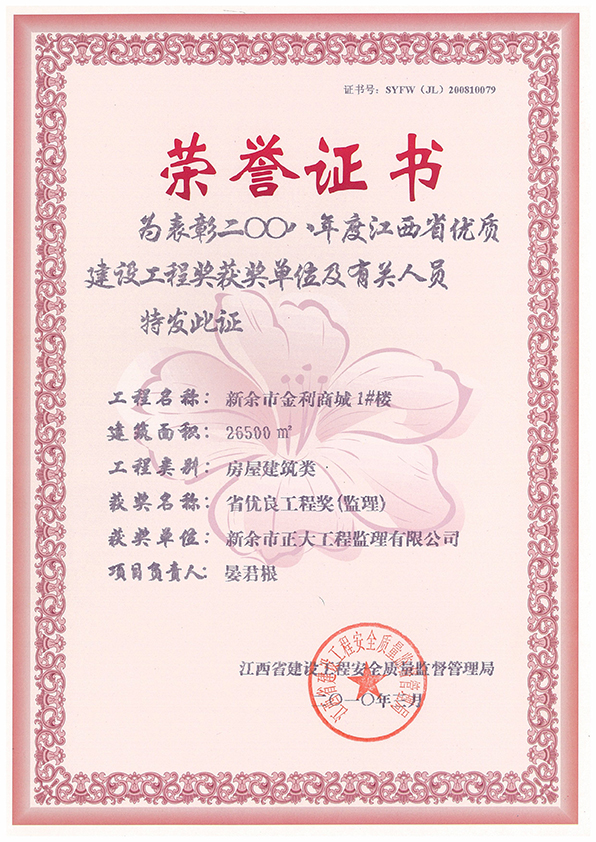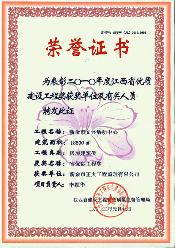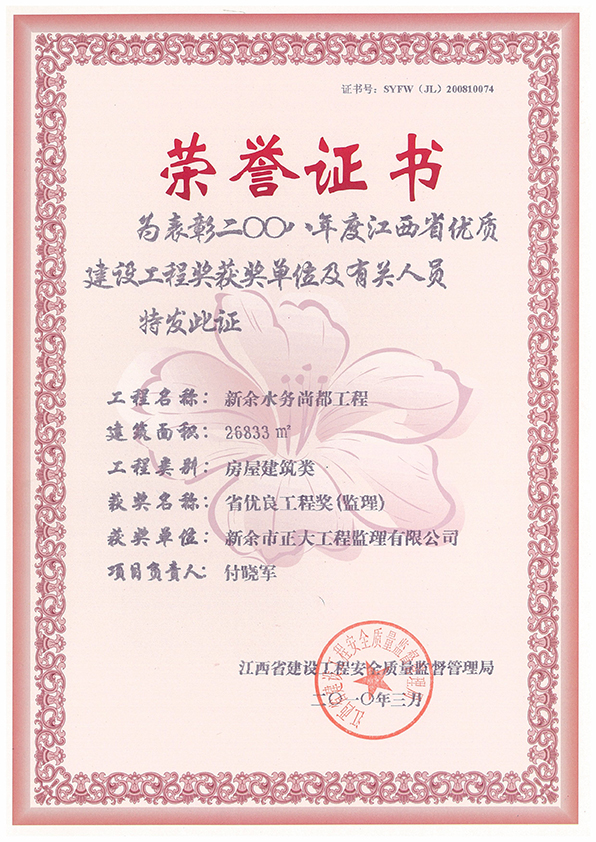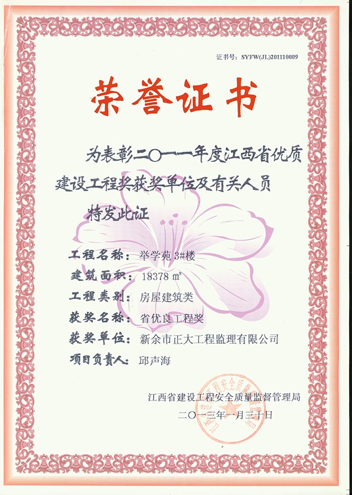 新余市正大工程監(jiān)理有限公司依托新余市建筑設計院,于1995年11月成立,是新余市開展監(jiān)理工作最早的監(jiān)理單位,本公司具有建設部核發(fā)的房屋建筑工程甲級監(jiān)理資質、市政公用工程乙級監(jiān)理資質、國家人防辦核發(fā)的人防工程監(jiān)理乙級資質。我公司始終堅持“客戶至上、質量第一、信守合同”的經營理念;追求“為社會創(chuàng)造價值、為業(yè)主創(chuàng)造效益、為自身謀求發(fā)展”的經營宗旨;遵循“守法、誠信、公正、科學、優(yōu)質、高效”的工作原則,以雄厚的技術力量、完善的管理制度、豐富的監(jiān)理經驗、良好的企業(yè)信譽迅速成為我市監(jiān)理行業(yè)的一支新銳力量! 查看更多>>